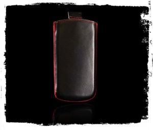 TelOne žepek za mobilni telefon iz pravega usnja. Črne barve, rdeči šivi. Dimenzije: 140 x 70mm.