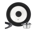Postavite pokrovko na lonec ali ponev, tako da silikon pritisne na rob. 🥘 Izpust pare poskrbi, da hrana ne prekipi, stekleni del pa omogoča pregled nad kuhanjem. Pokrovko lahko uporabljate pri kuhanju, dušenju ali wok jedi. 🌱 Po uporabi jo enostavno očistite – ročno ali v pomivalnem stroju. 💦