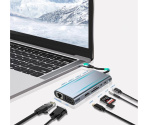 Večnamenski USB-C naprava 11-v-1 z 4K HDMI, VGA, Ethernetom, SD/TF čitalci in 4x USB vrati. Idealna docking postaja za prenosnik, tablico ali telefon – hitro, stabilno in kompaktno!